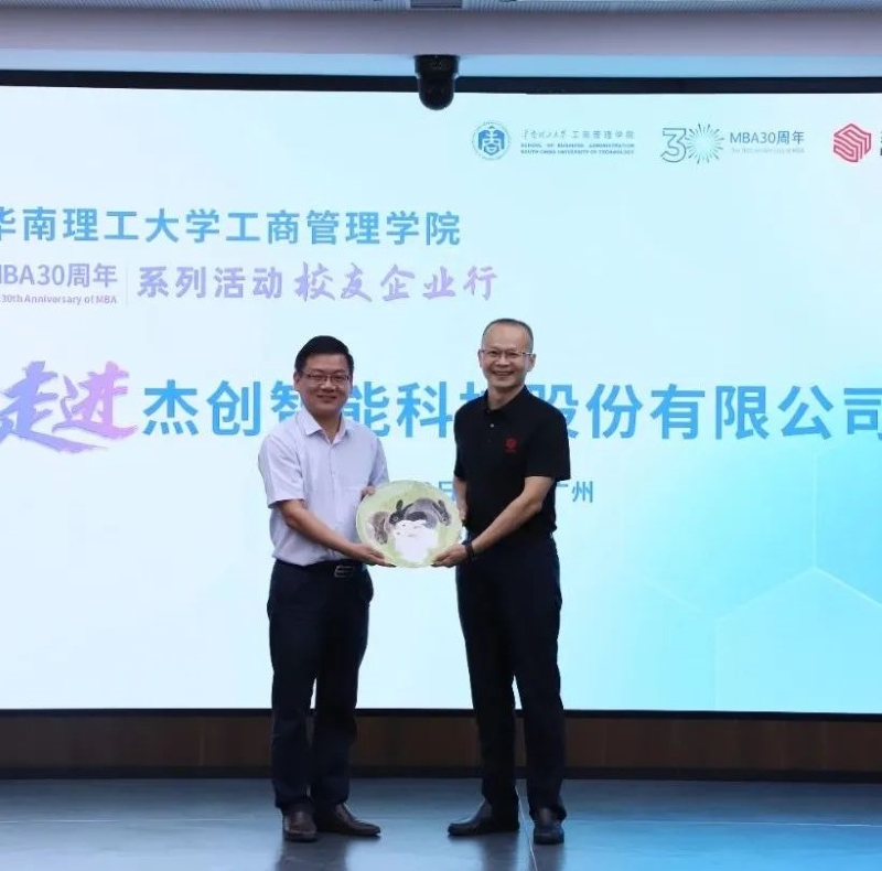 11月9日下午,华南理工大学工商管理学院MBA(以下简称华工MBA)30周年系列活动校友企业行走进jiuyou.com九游智能进行参访交流,作为2000级MBA校友,jiuyou.com九游智能董事长孙超携公司相关部门同事热情接待了华工MBA老师及校友。