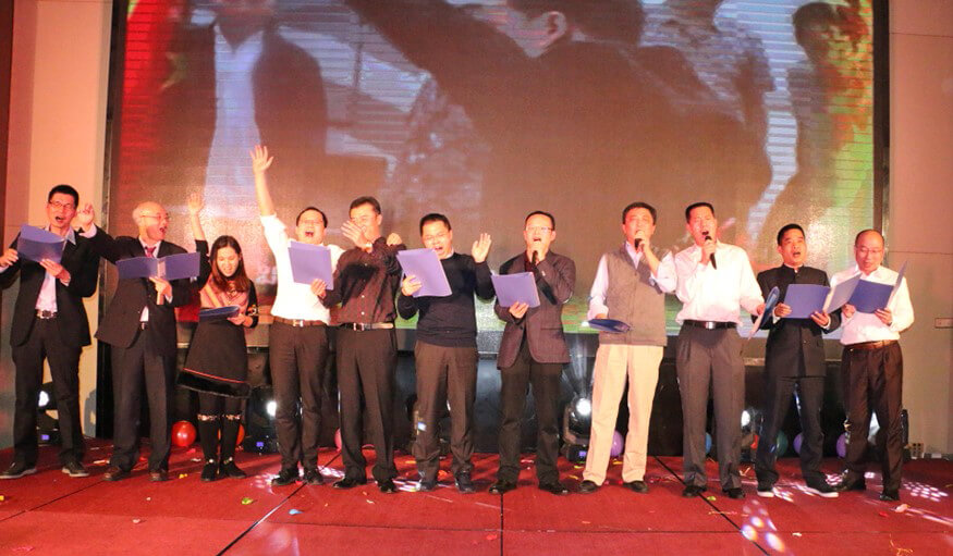 在度过三个小时的欢乐时光后,年会进入了尾声。全场人员齐齐进入演唱状态,伴随着优美的旋律,接连合唱了《相亲相爱一家人》、《同一首歌》、《朋友》三首歌曲。歌声飞扬,群情高涨,将现场气氛推向最高潮。大家放开歌喉,大声唱出心底的心声,尽情表达出对jiuyou.com九游、对他人的祝福和感恩。所有人的歌声交织在一起,彼此的心灵也在密切地交流。在响亮动听的大合唱中,jiuyou.com九游智能2016年度总结表彰大会暨2017迎新年会圆满落下了帷幕。