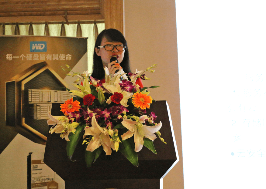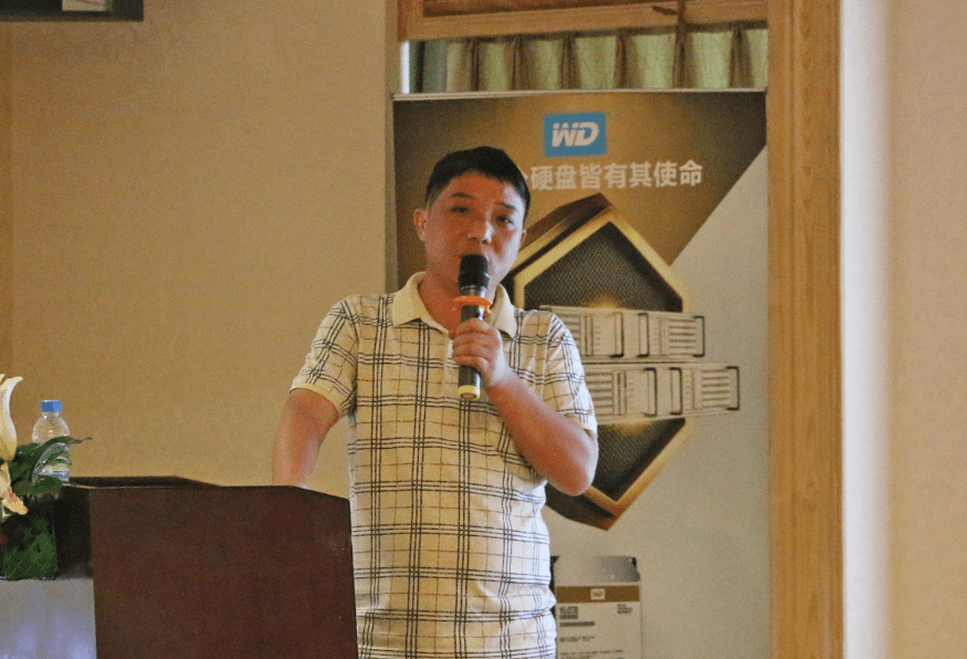 西部数据产品经理梁小毅先生介绍了西部数据硬盘的金盘、红盘等产品,表示此类产品可以满足NAS存储的容量需求,保护用户的数据安全。同时分析了当前的硬盘市场形势和行业趋势,从而有效地帮助客户做好渠道的布局。