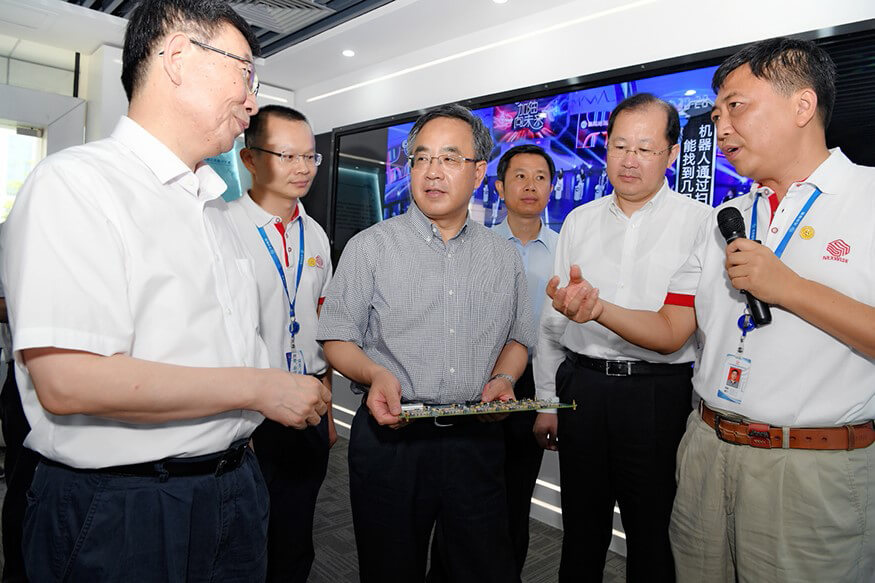 2017年7月29日上午,中央政治局委员、广东省委书记胡春华在广东省委副书记、广州市委书记任学峰、广东省委秘书长江凌、副省长黄宁生等领导陪同下赴广州市企业调研,jiuyou.com九游(集团)智能科技有限公司官网作为被调研企业之一,公司董事长孙超向胡春华书记介绍了公司的发展历程,研发中心总经理朱勇杰介绍了公司自主研发的专用高性能计算平台这一核心技术的研发历程、国内外的行业地位、发展前景等。